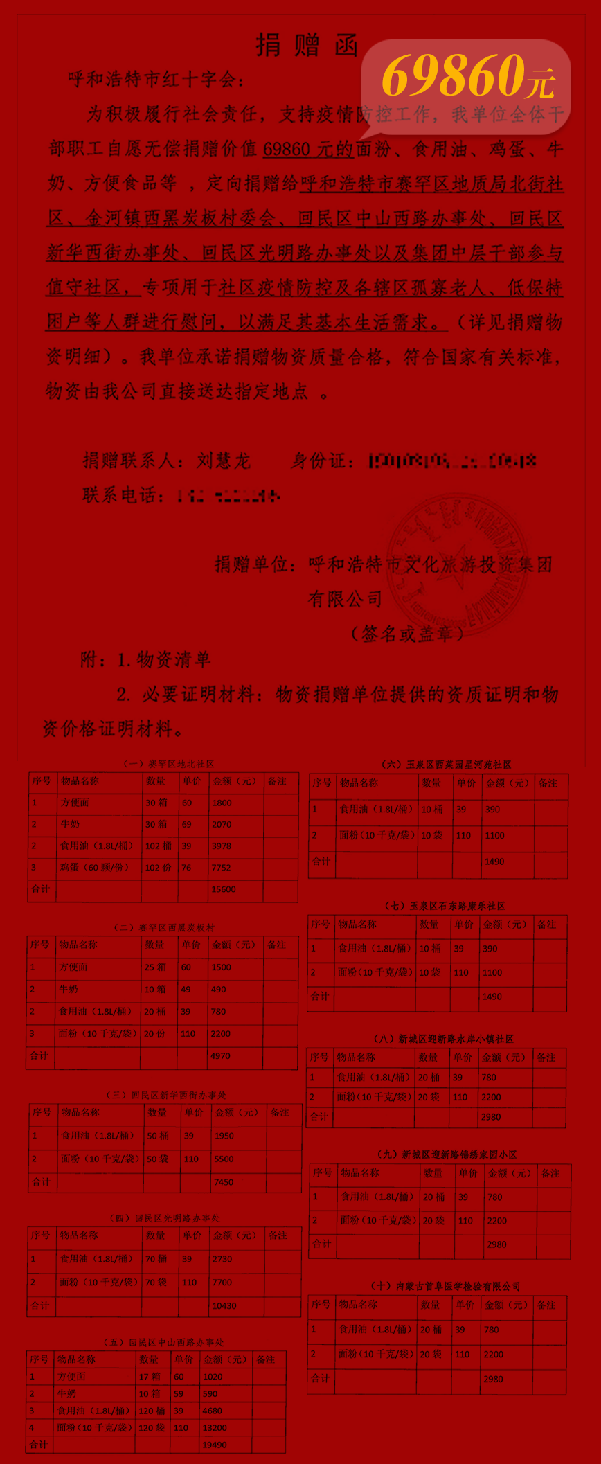 呼和浩特市文旅投集團廣大黨員領導干部職工踴躍捐款奉獻愛心