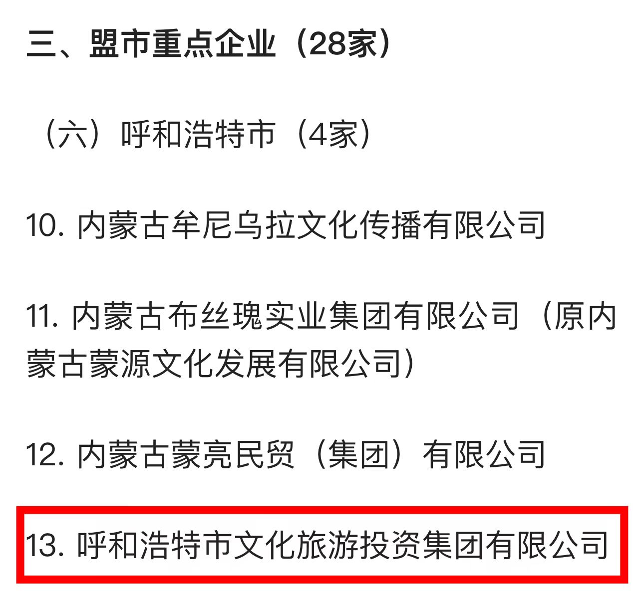 呼和浩特市文化旅游投資集團有限公司入選