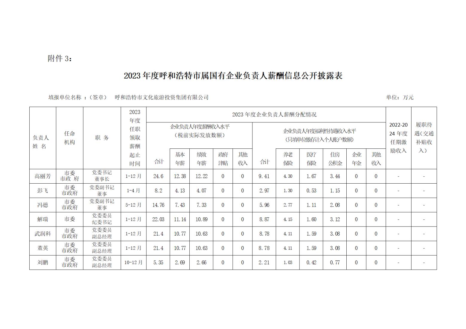 ? ??現(xiàn)將2023年度呼和浩特市直屬國有企業(yè)負(fù)責(zé)人薪酬信息公開披露。